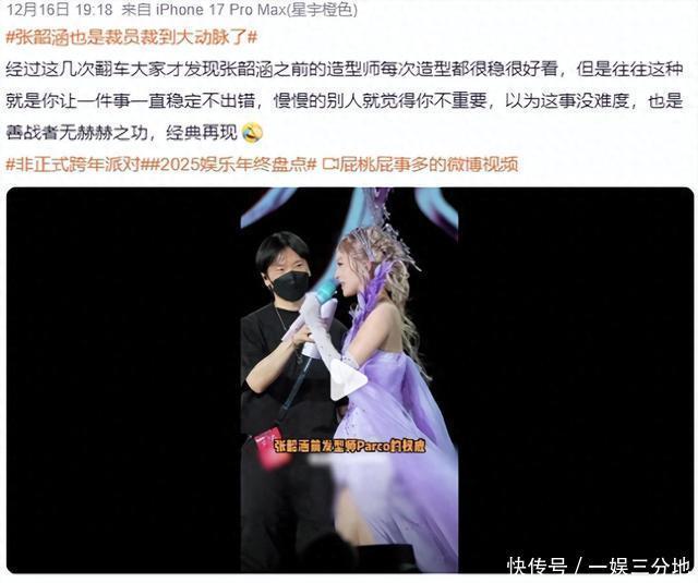 张韶涵造型师走后造型一度翻车,衣服像钢丝球缠身,头发乱成泡面